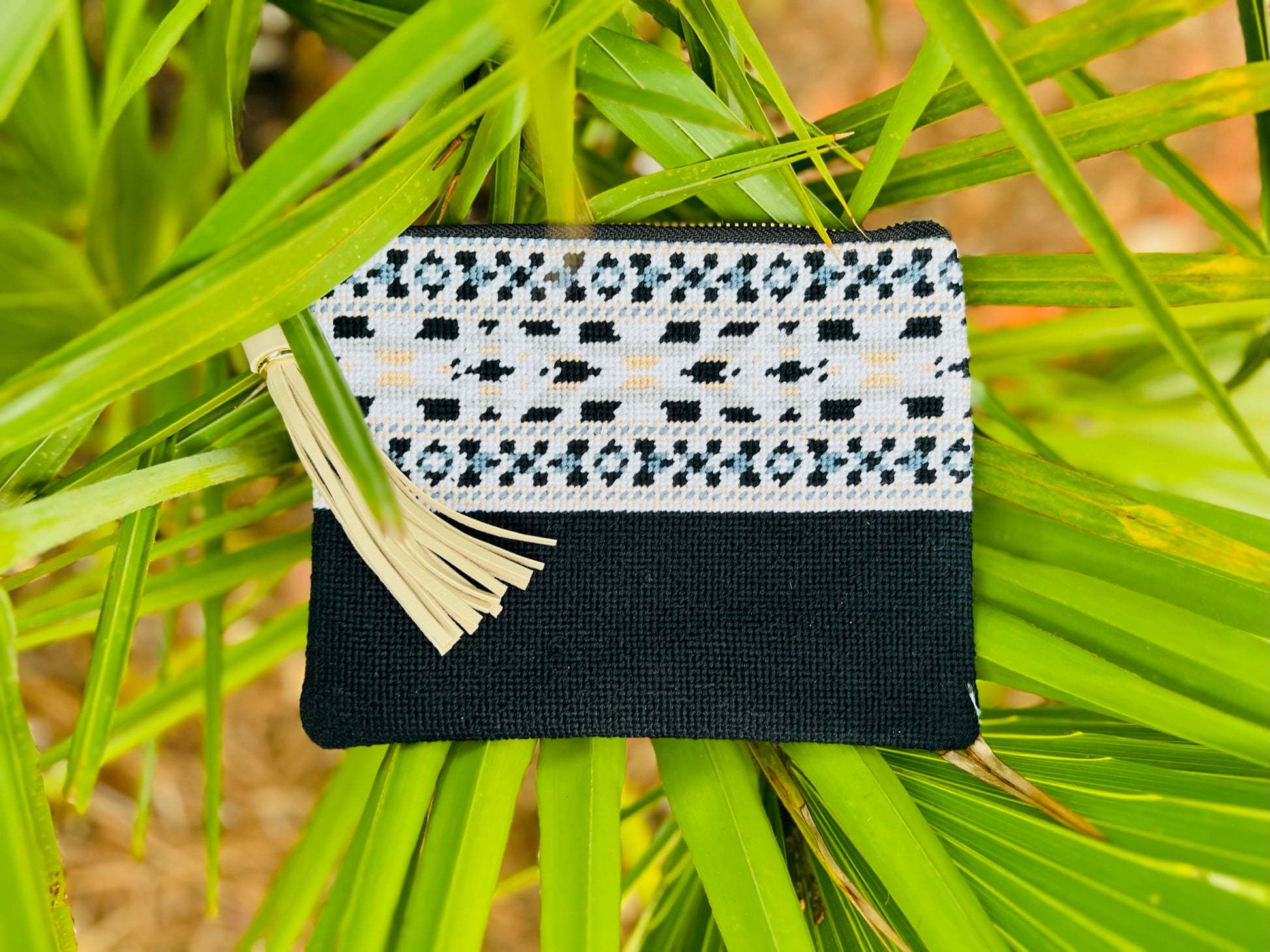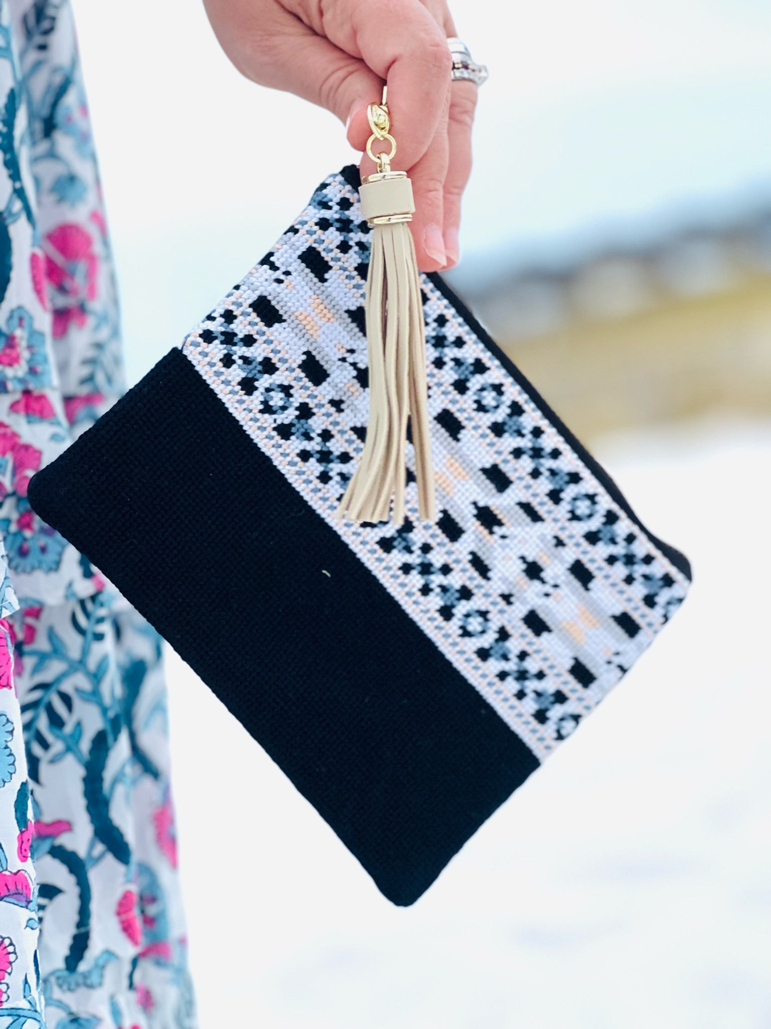 The Ribbon Needlepoint Clutch in Black by SCT Designs